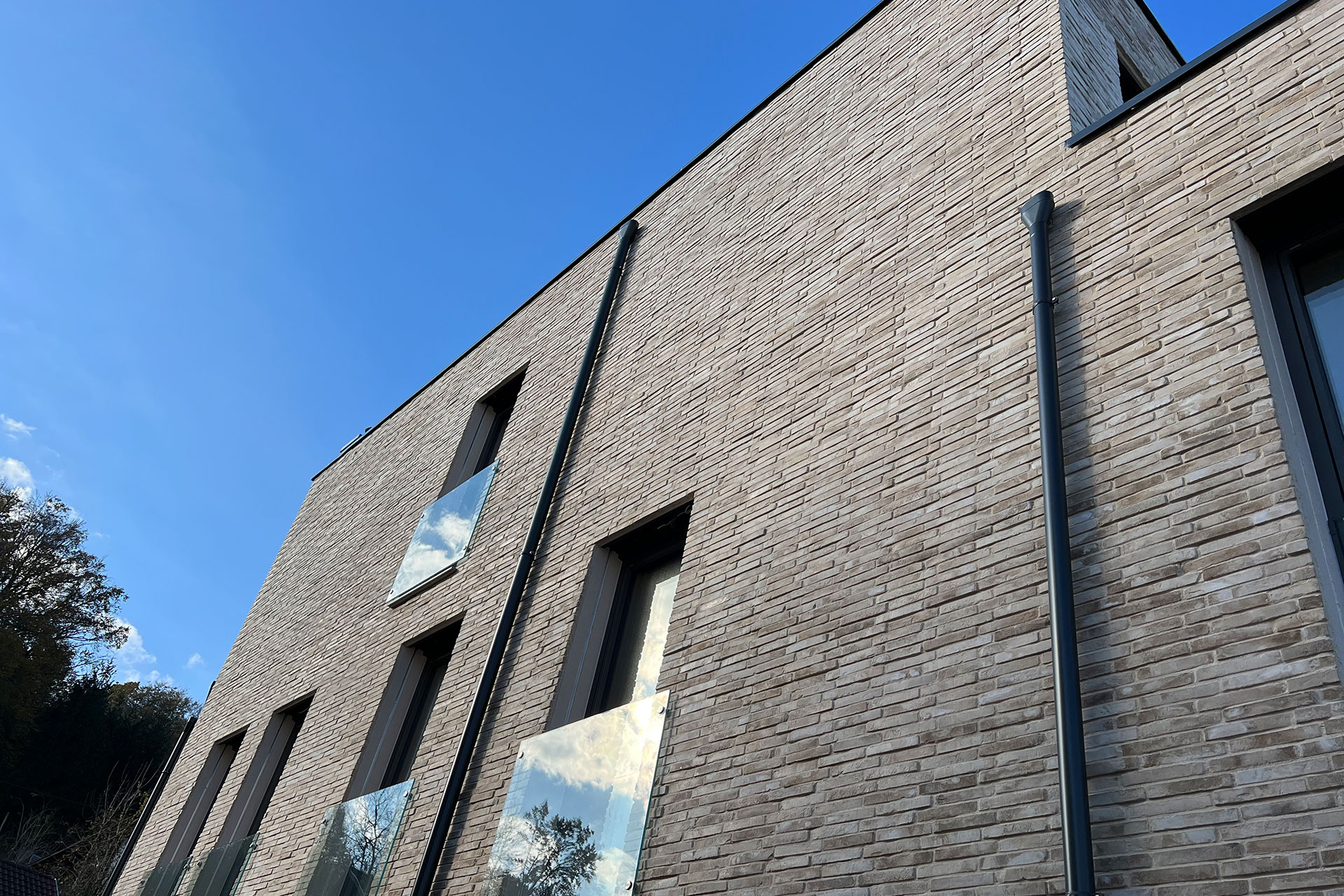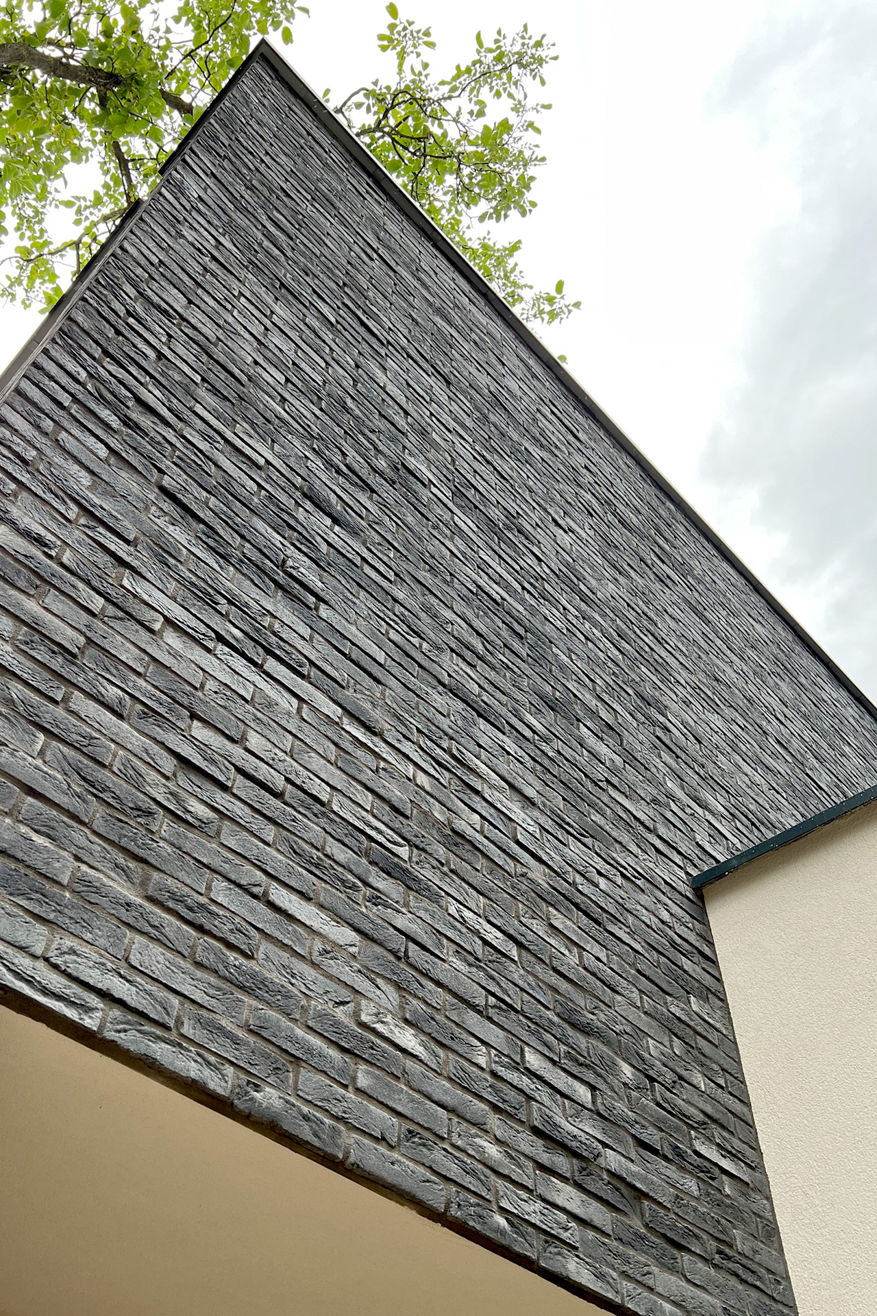 Expert installation of slip brick, artificial and natural stone on exterior façades with flawless alignment.